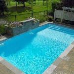 Service : Avant → Surface de béton ternie, traces noires et accumulation de saleté autour de la piscine.